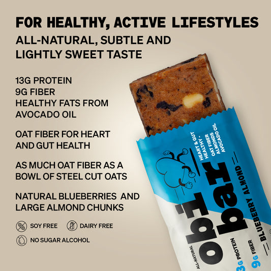 Obi Bar Blueberry Almond - Protein and Oat Fiber Bar | All-Natural, Sustained Energy | Lightly Sweet Taste | Michigan Blueberries, Almond Chunks | MADE WITH AVOCADO OIL | Egg White Protein | Soy Free, Dairy Free, No Sugar Alcohol, No Seed Oils | 12 Pack